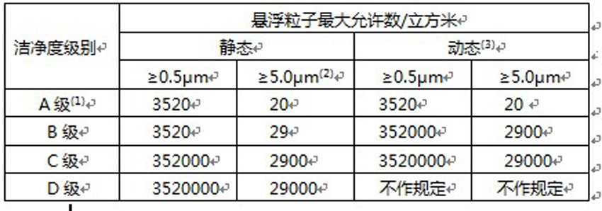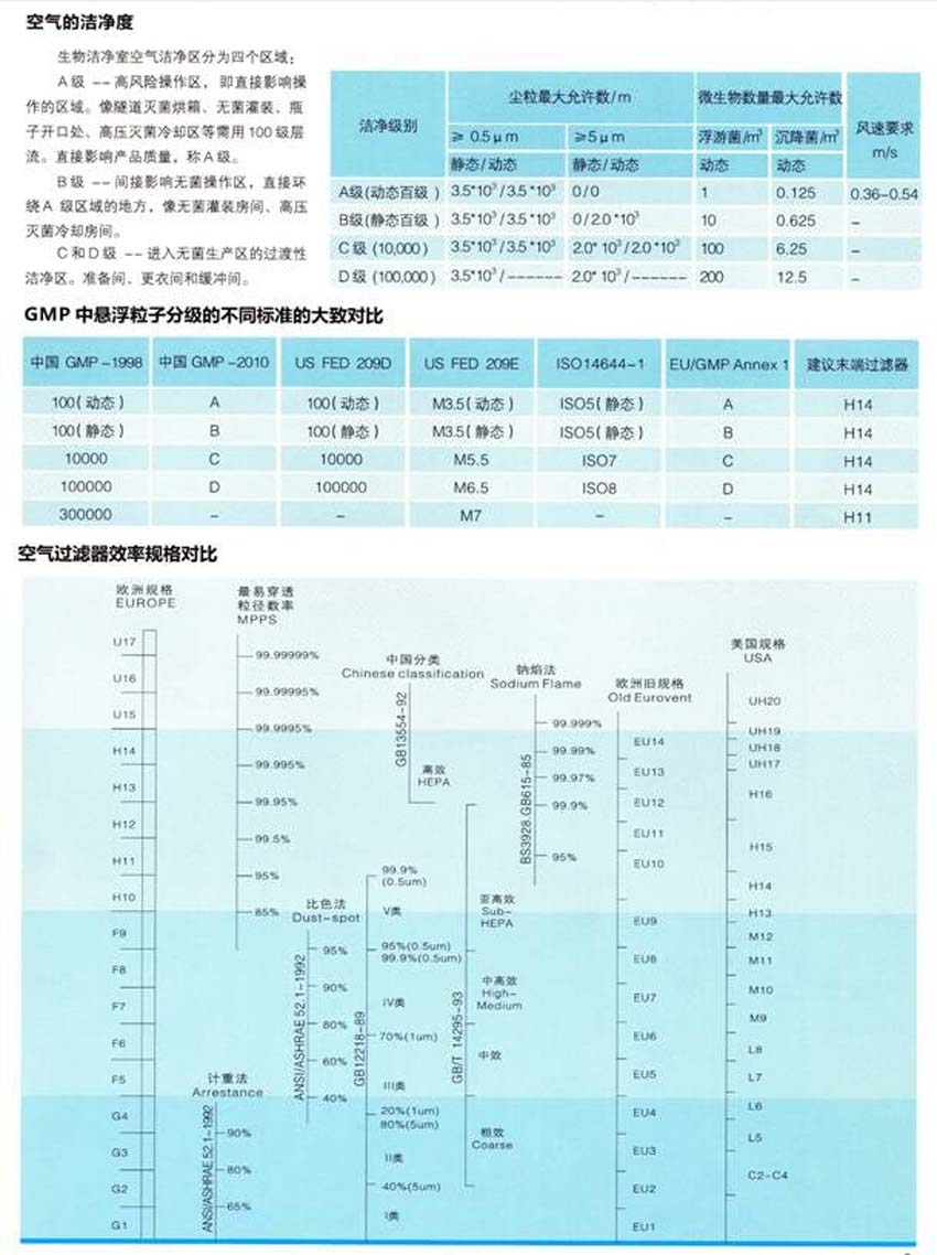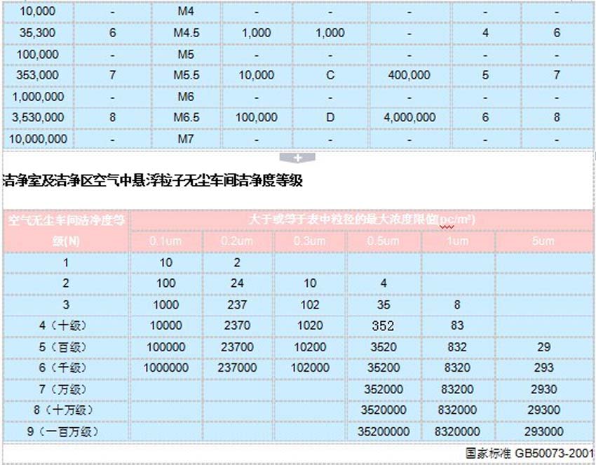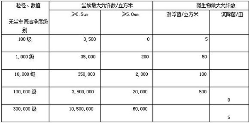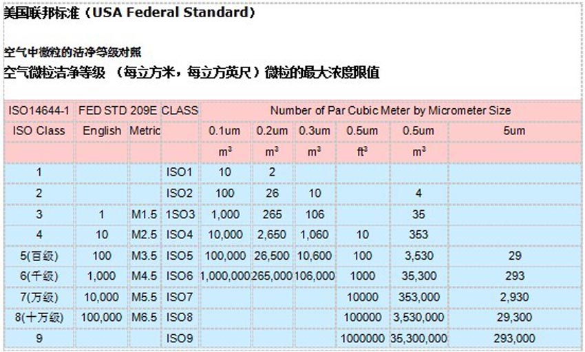 2)空气无尘车间洁净度分级标准:GB/T16292-1996(中国标准)