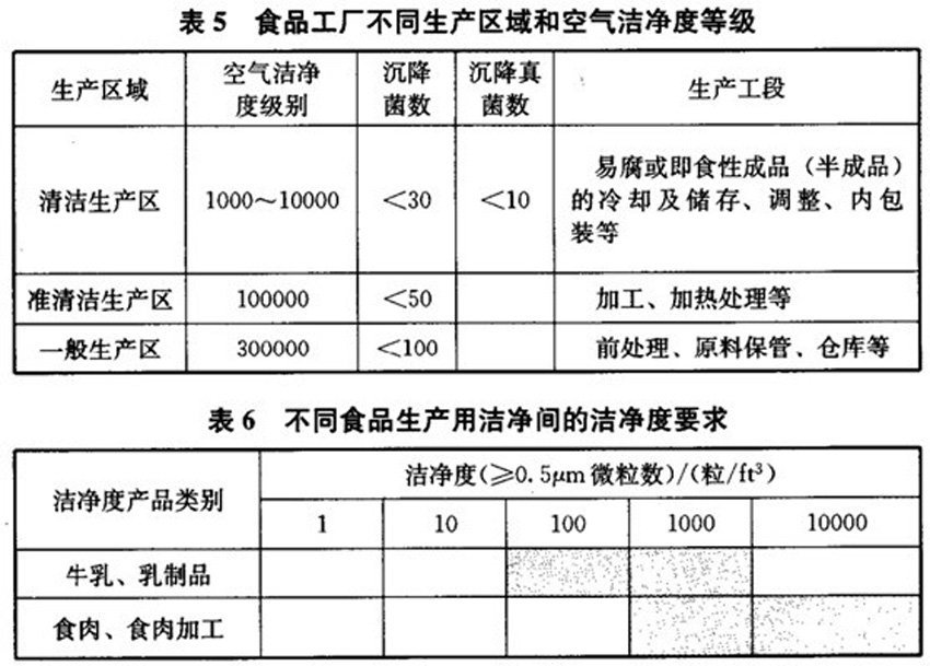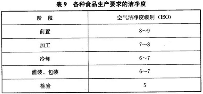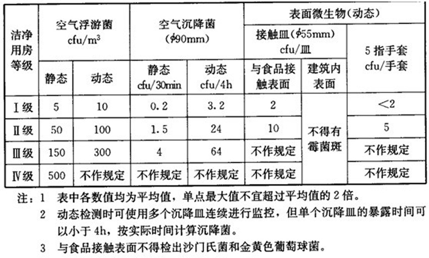 食品厂净化车间用房等级分级和环境参数标准与要求