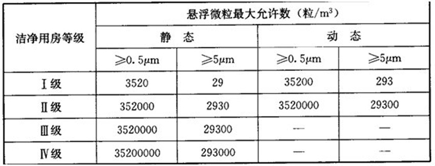 各级洁净用房的悬浮微粒要求